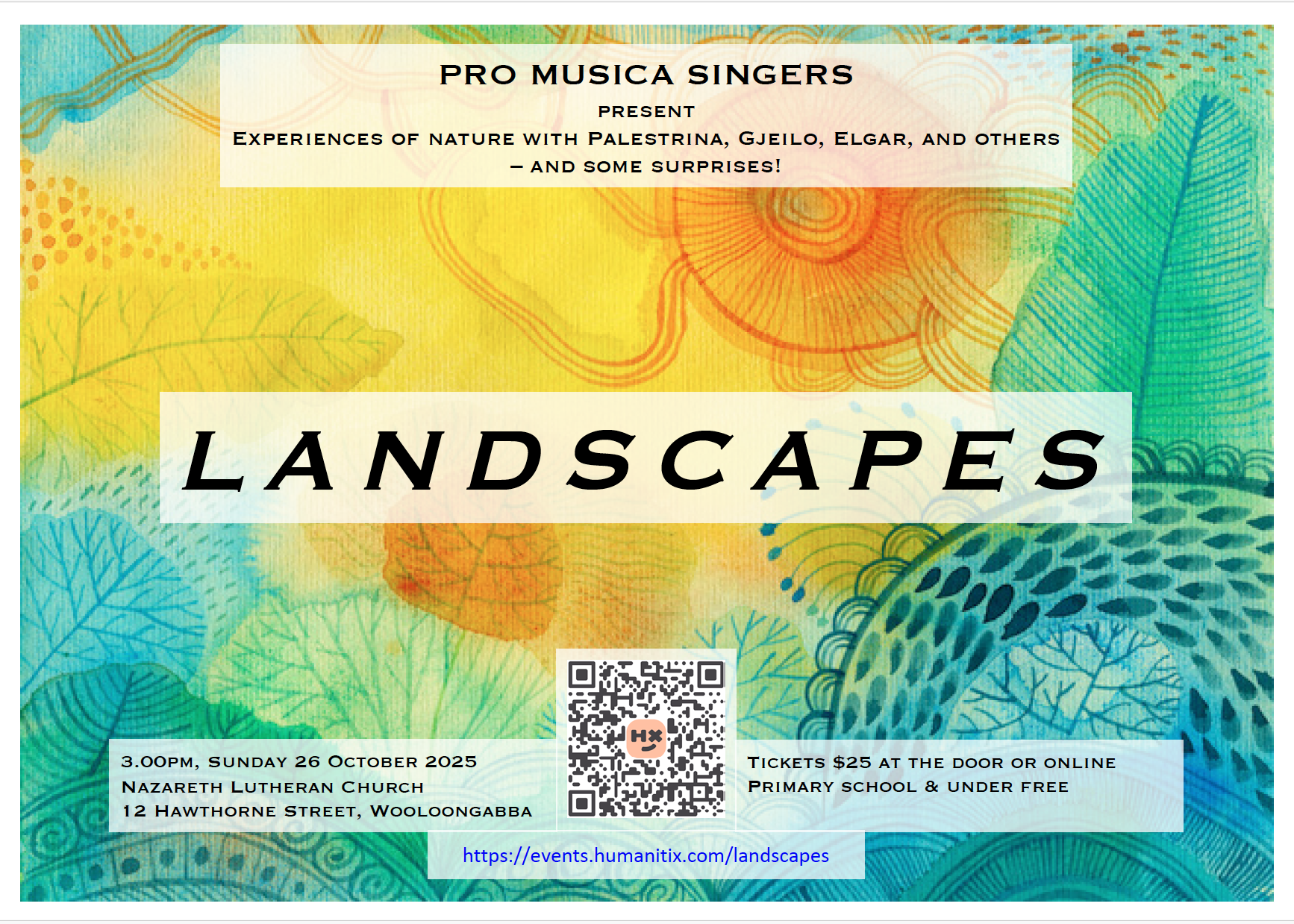 Join Pro Musica Singers for a varied program of entertaining music to delight your senses as we enjoy the Brisbane spring of 2021!